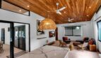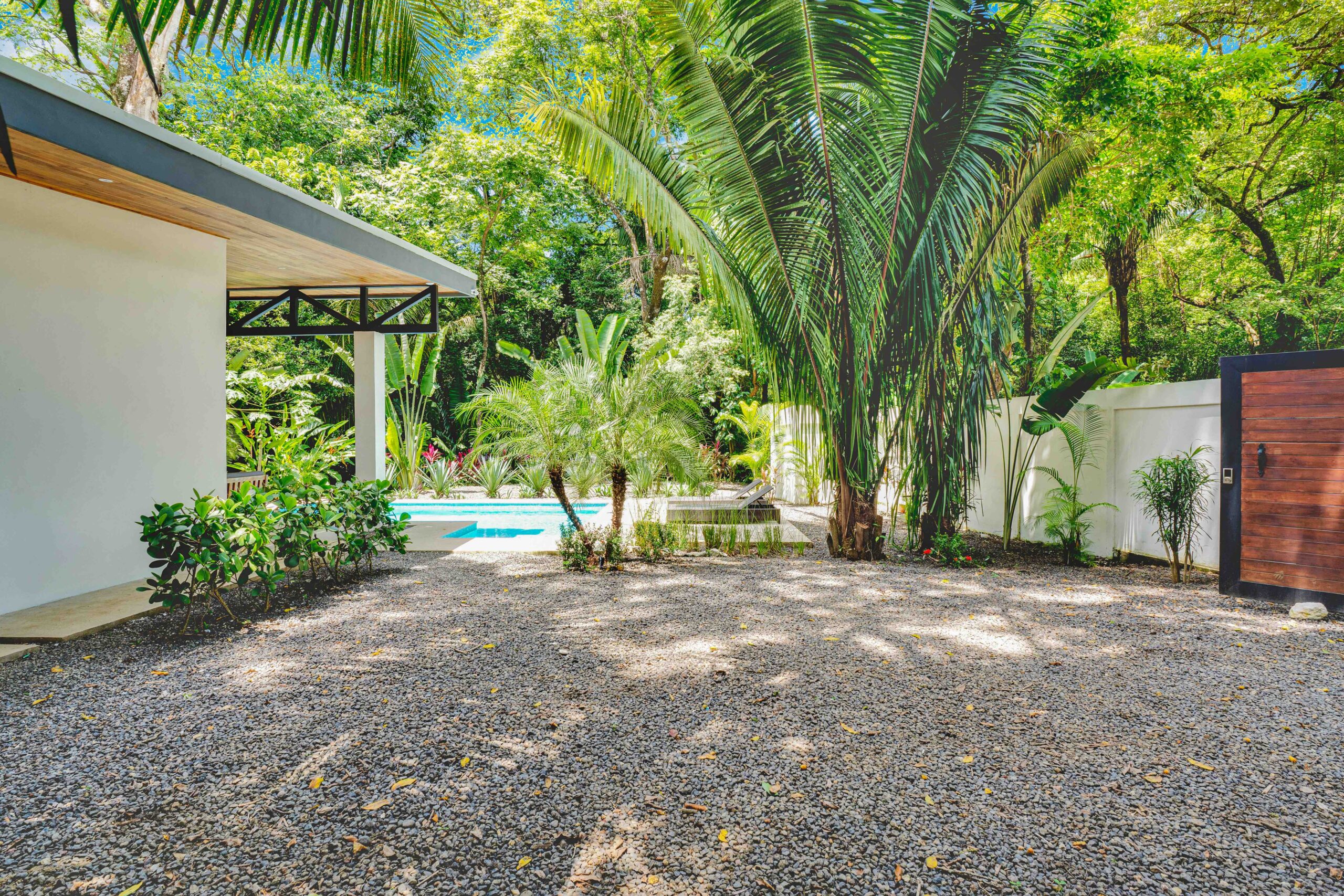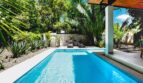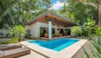 Casa Jungalow is a three-bedroom, two bath home in the Selvamar community. The home is at the end of a cul-de-sac, with only a few neighboring houses. The property backs up to an environmental conservation area, giving it a strong connection to the natural environment.